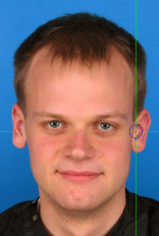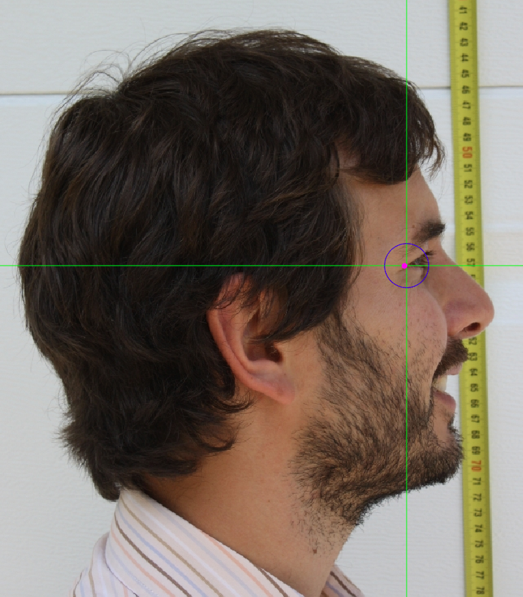Figure 43. Example of a photograph where the subject’s hair is obscuring partially the ear, preventing from marking tragion.
