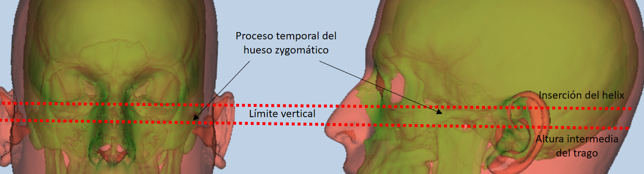 Figure 42. Tragion (left) in oblique view. Approximation in the image.