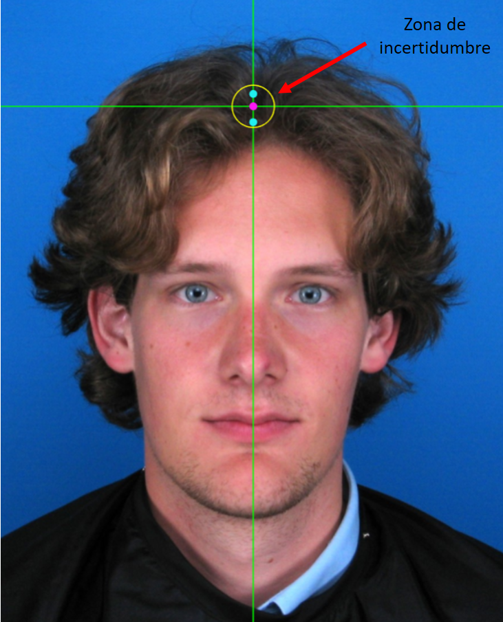 Figura 5. Zona de incertidumbre para el marcado de vertex en sujetos con cabello.
